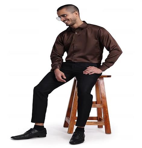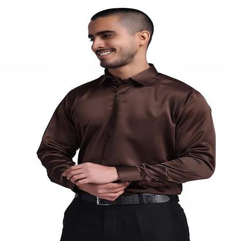 Cotton Satin Brown Men Slim fit shirt Made in India Our Brand. |