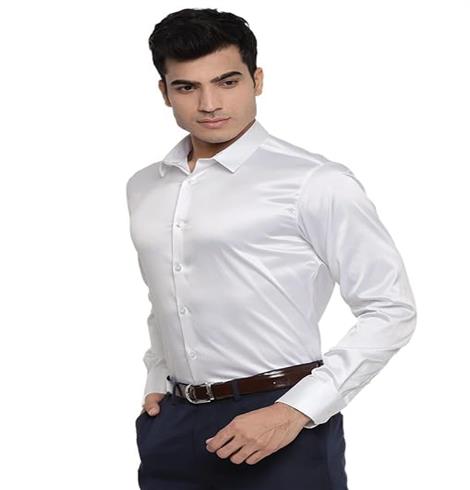 Cotton Satin white Men Slim fit shirt Made in India Our Brand